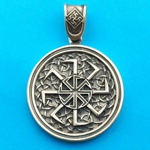 Великий двосторонній кулон зі срібла 925 проби зі слов'янськими оберегами "Світоч" і "Світовит". На вушку оберегу зображено символи "Одолень Трава" та "Квітка Папороті".
